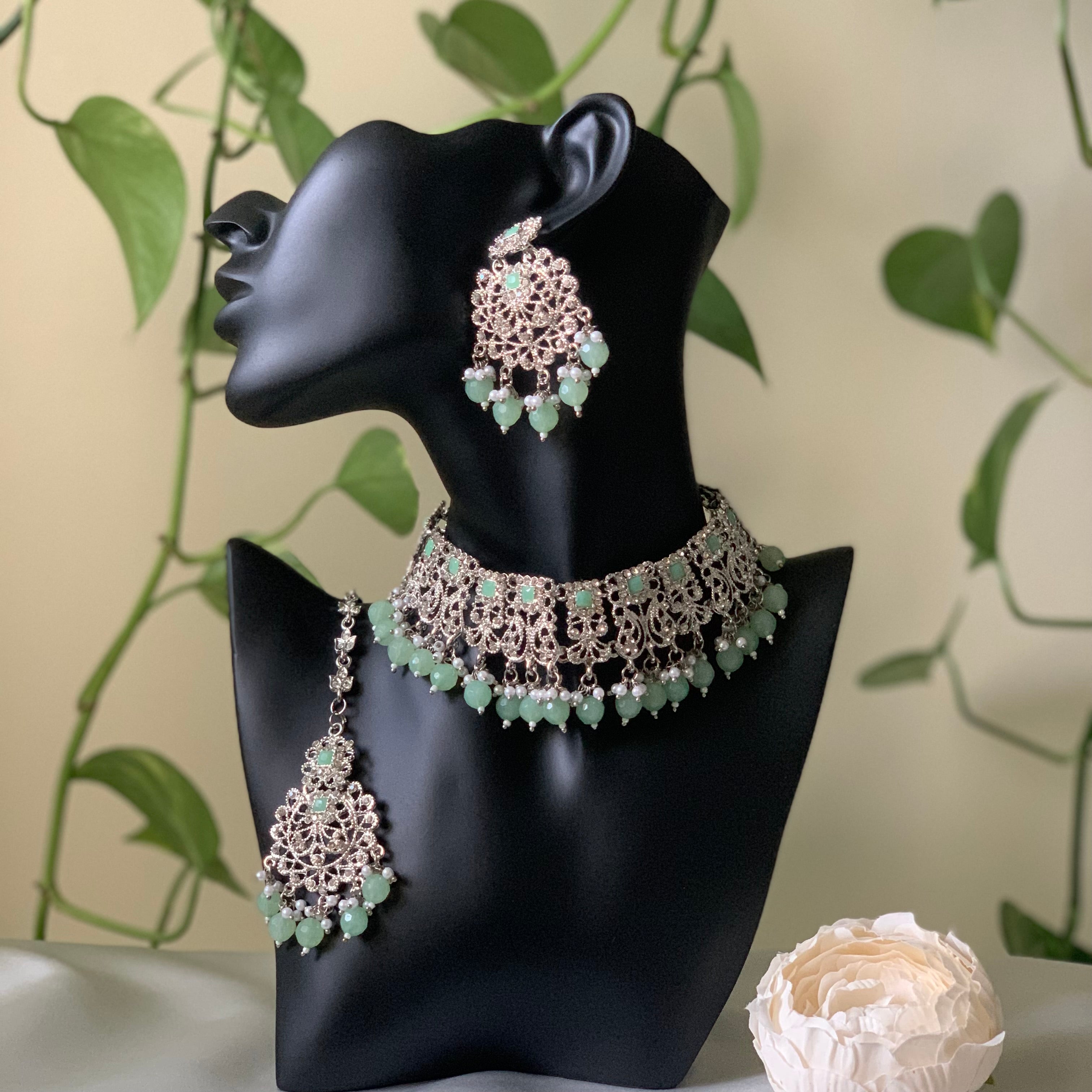 ZAIRAH | Soft Pink & Mint Gold Necklace Set