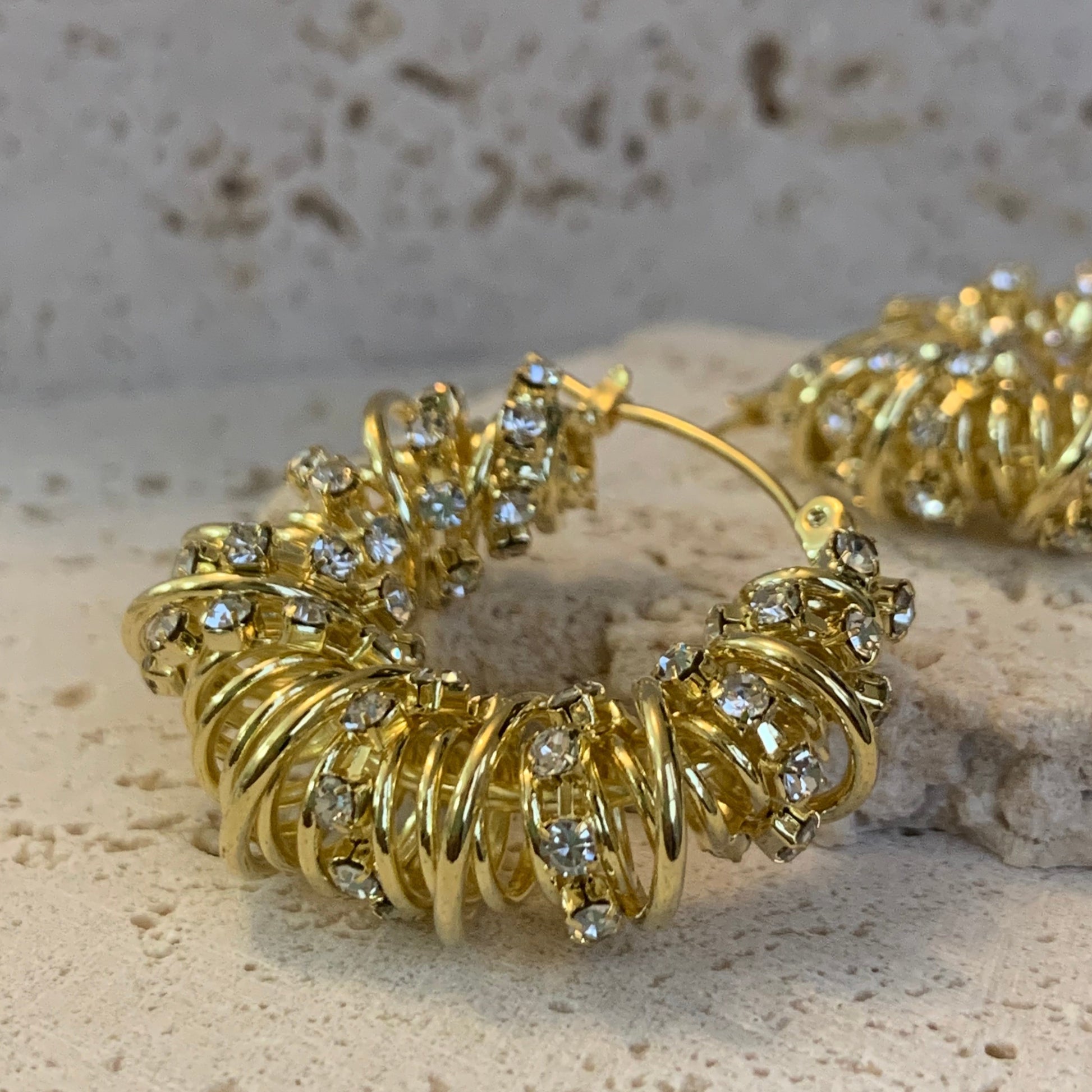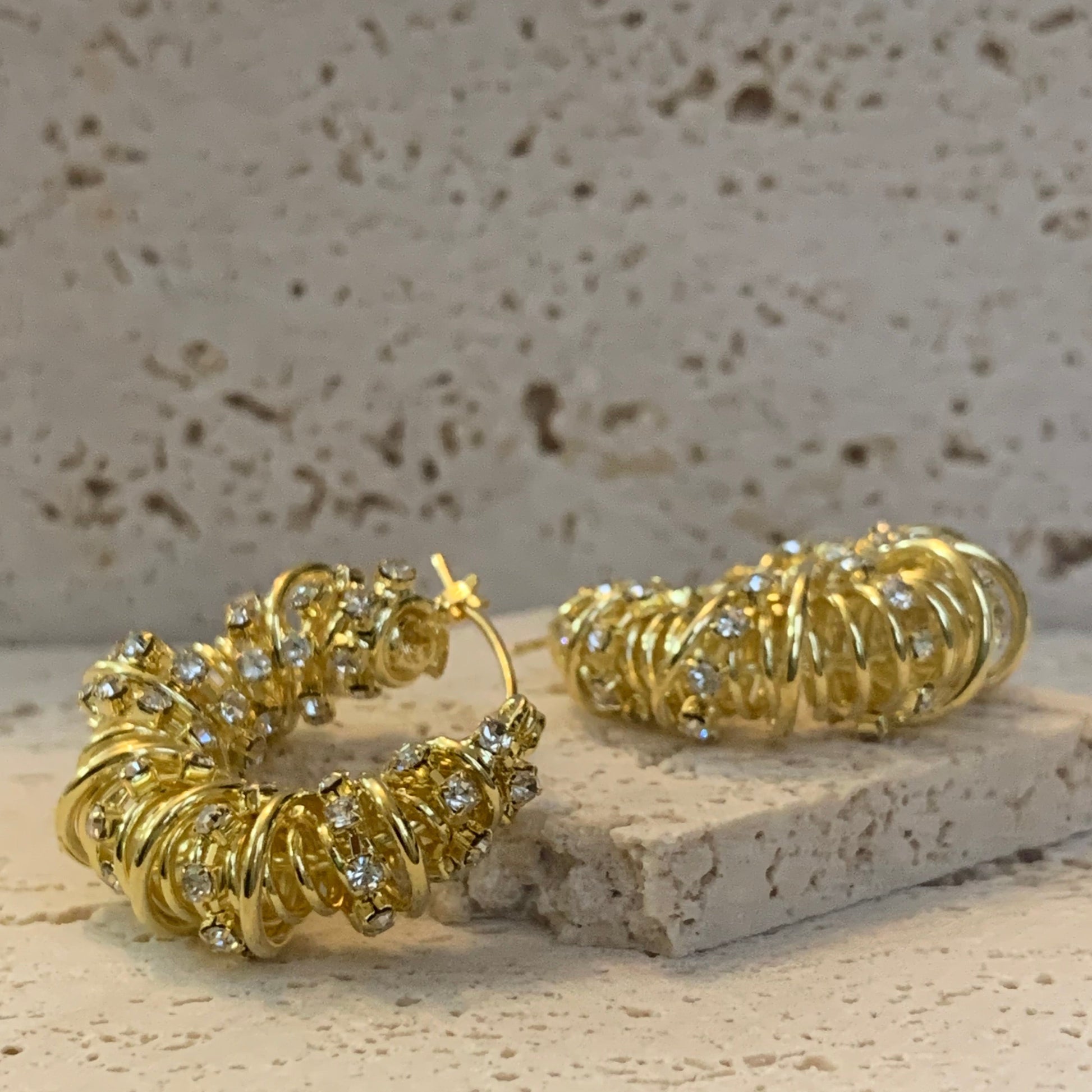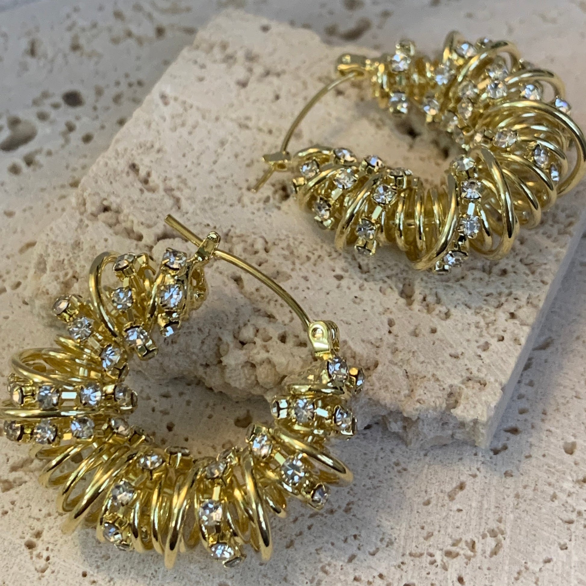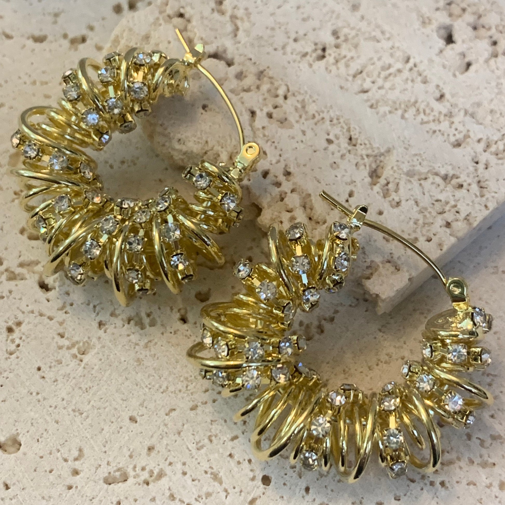 These elegant earrings feature a distinctive spiral design that is carefully wrapped around the core, adding a touch of sophistication to any outfit.