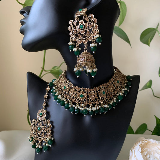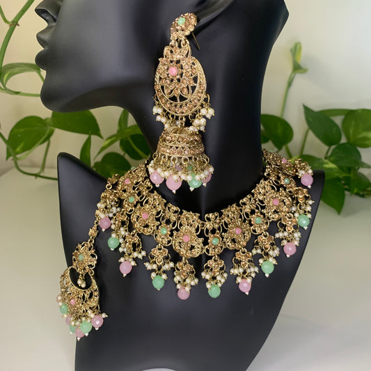 ZAIRAH | Soft Pink & Mint Gold Necklace Set